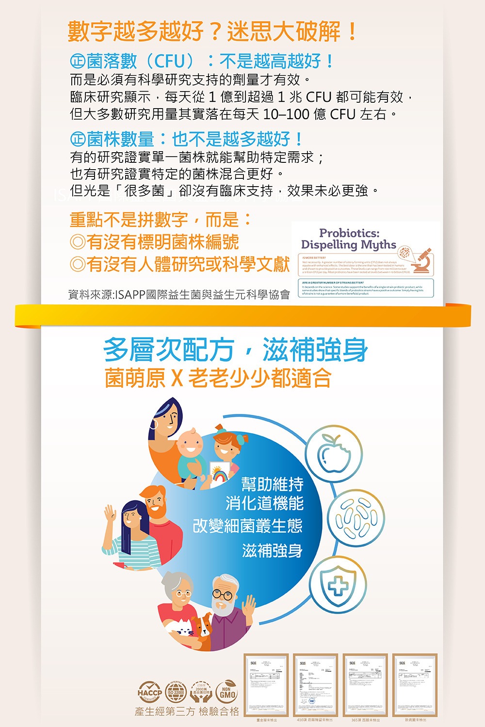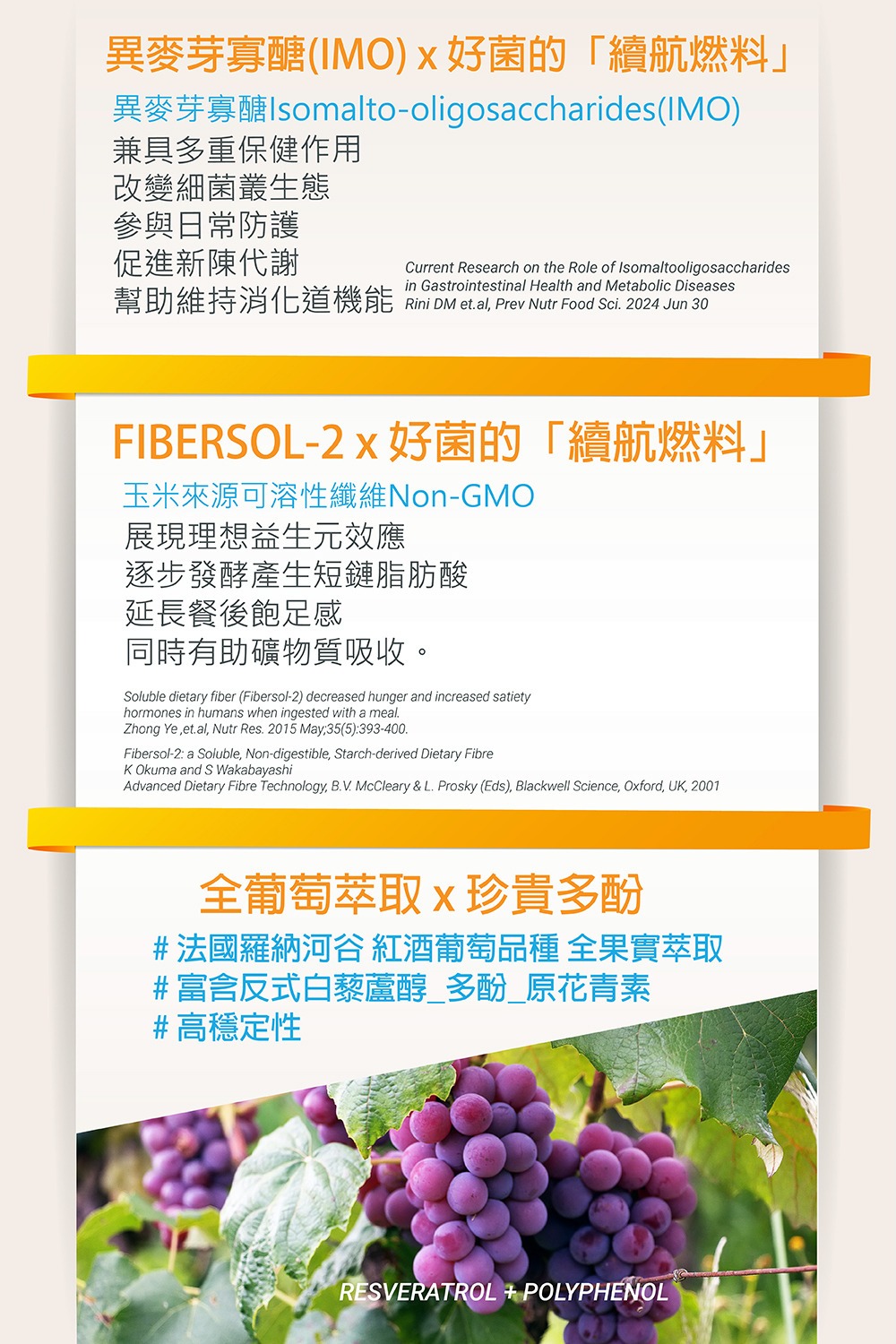 ✨協同菌株|NCFM + Bi-07✨加乘護盾|NBG 酵母β-1,3/1,6 葡聚醣✨養菌續航|IMO+Fibersol-2✨多酚加分|法國 BioVin 全葡萄萃取✅益生菌 x多醣體 x多酚 x益生元✅NCFM與Bi07 配搭_菌力倍效✅依實證添加_每包含135億高效菌✅包含120mg 酵母葡聚醣_高純有實證✅添加法國全葡萄萃取(含白黎蘆醇_原花青素等多酚 )