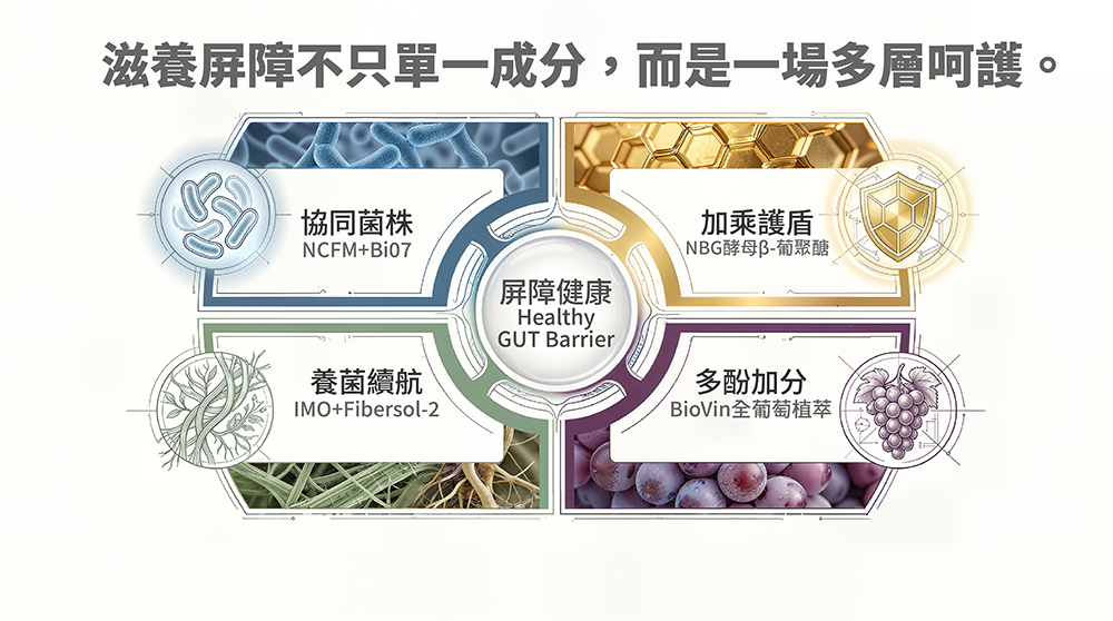 🛡️協同菌株|NCFM + Bi-07🛡️加乘護盾|NBG 酵母β-1,3/1,6 葡聚醣🛡️養菌續航|IMO+Fibersol-2🛡️多酚加分|法國 BioVin 全葡萄萃取✅益生菌 x多醣體 x多酚 x益生元✅NCFM與Bi07 配搭_菌力倍效✅內含 實證劑量菌數✅每包含120mg 酵母葡聚醣_高純有實證✅添加法國全葡萄萃取(含白黎蘆醇_原花青素等多酚 )
